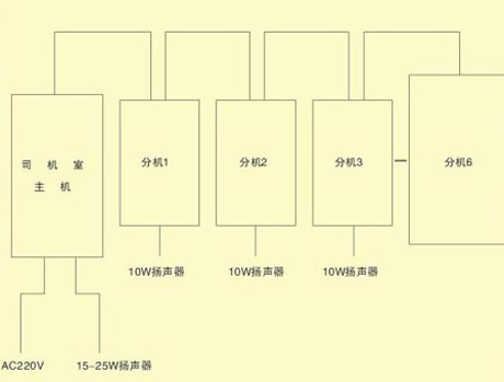 XY―2型系列產(chǎn)品廣泛應(yīng)用于冶金、電力等行業(yè)的有線對講系統(tǒng),在天車上其主站安裝在司機(jī)室,分站可以分布在電力室內(nèi)、高壓室、大小車上和天車登機(jī)門。該系統(tǒng)由若干臺廣播對講機(jī)組成一個(gè)機(jī)內(nèi)通訊網(wǎng)絡(luò),各個(gè)有線廣播站內(nèi)置揚(yáng)聲器和送受話器,任何一個(gè)廣播站喊話,其余話站均能接通廣播?梢允股a(chǎn)人員方便地與天車操作人員取得聯(lián)系。在各個(gè)站操作時(shí)無需撥號,可以方便的實(shí)現(xiàn)一對一講話,各話站并列接線,用戶可根據(jù)工藝要求任意擴(kuò)充,每個(gè)話站都是一個(gè)獨(dú)特的系統(tǒng),任一臺損壞,不會影響其余分站正常工作。在起重設(shè)備上可以方便地實(shí)現(xiàn)上下車聯(lián)系,機(jī)內(nèi)操作人員相互通訊。接線原理框圖參見附錄。