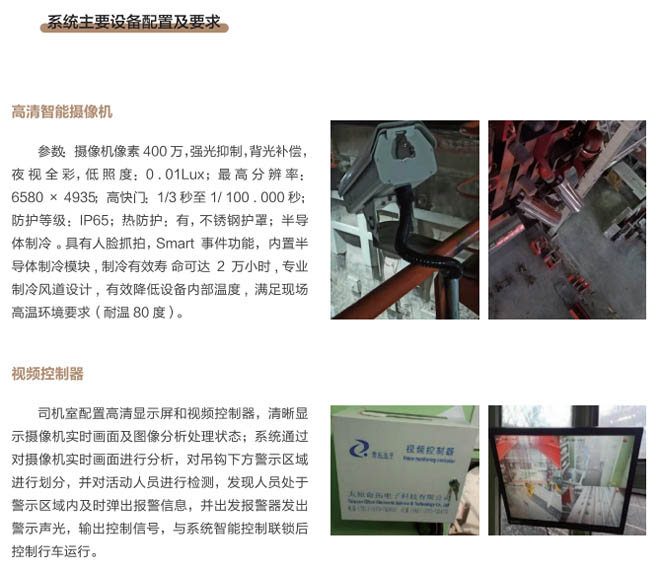 隨著工業(yè)智能化、自動(dòng)化、數(shù)字大數(shù)據(jù)廣泛應(yīng)用,起重機(jī)是冶金等行業(yè)生產(chǎn)的重點(diǎn)設(shè)備,廠礦設(shè)備復(fù)雜、環(huán)境差、安全隱患多等因素更需要進(jìn)行設(shè)備自動(dòng)化、智能化的升級(jí)管理、實(shí)現(xiàn)廠區(qū)設(shè)備無(wú)人化、智慧工廠的發(fā)展,如何更好的解決行車(chē)作業(yè)過(guò)程中安全運(yùn)行工作亟待解決,我公司研發(fā)的天車(chē)安全預(yù)警智控管理系統(tǒng)能很好的輔助天車(chē)生產(chǎn)過(guò)程的精準(zhǔn)作業(yè),并進(jìn)行智能大據(jù)處理分析,實(shí)時(shí)跟蹤識(shí)別吊具與工件的距離及設(shè)備運(yùn)行狀況,設(shè)定天車(chē)作業(yè)區(qū)警戒區(qū)域、危險(xiǎn)區(qū)域通過(guò)AI視頻圖像分析處理,當(dāng)作業(yè)設(shè)定區(qū)域內(nèi)進(jìn)入危險(xiǎn)人員進(jìn)入后系統(tǒng)會(huì)及時(shí)發(fā)出語(yǔ)言閃光報(bào)警、并通過(guò)擴(kuò)音喇叭對(duì)地喊話、輔助行車(chē)駕駛員進(jìn)行安全駕駛,必要時(shí)通過(guò)系統(tǒng)對(duì)行車(chē)進(jìn)行自動(dòng)控制,天車(chē)安全預(yù)警智控系統(tǒng)就是為降低天車(chē)運(yùn)行中存在的危險(xiǎn)系數(shù)而開(kāi)發(fā)的安全智能控制裝置,確保行車(chē)作業(yè)區(qū)域內(nèi)無(wú)危險(xiǎn)人員進(jìn)入,保證人員生命安全。減少事故發(fā)生極大的提高設(shè)備操作安全性和生產(chǎn)效率。